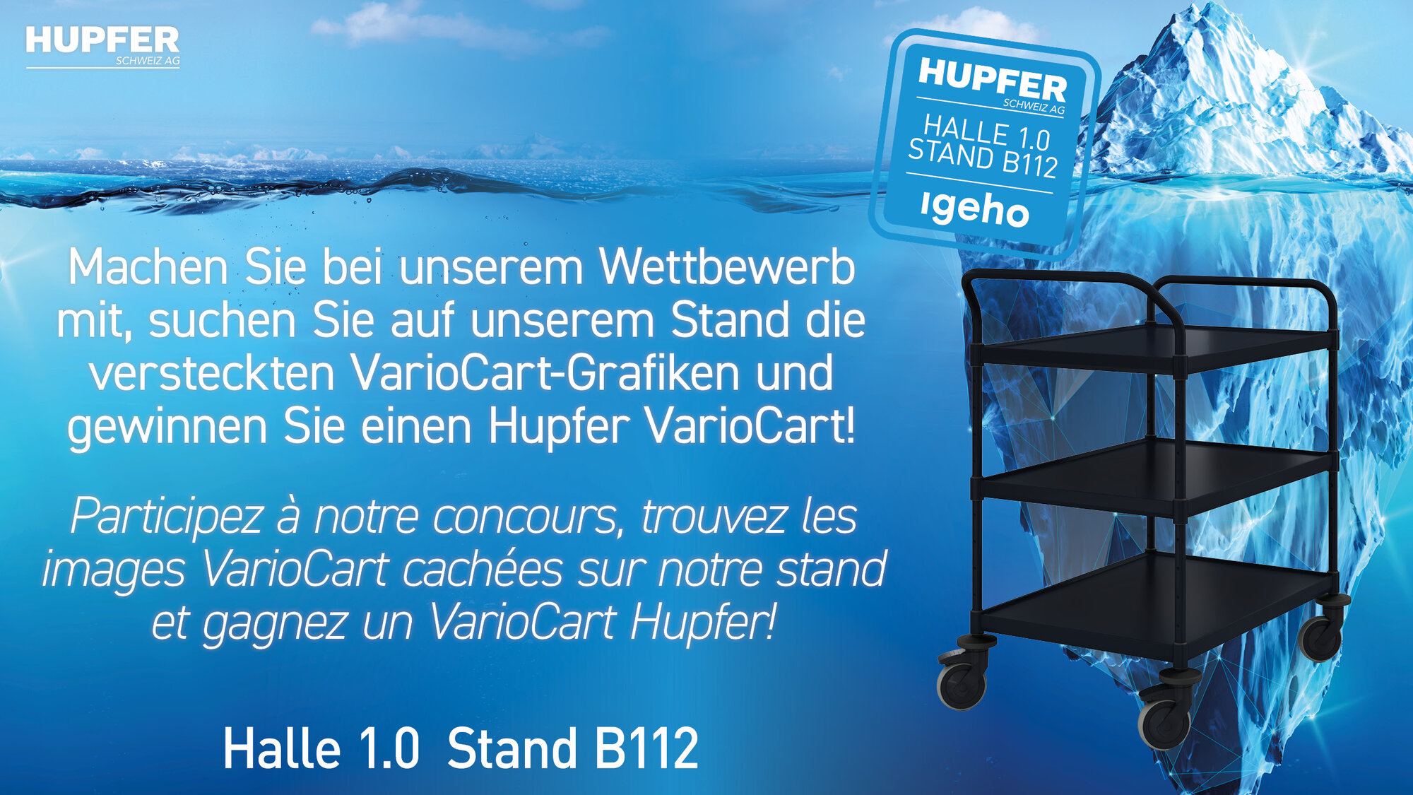 Kommt vorbei, sagt Hallo und macht bei unserem Wettbewerb* mit, suchen Sie auf unserem Stand die versteckten VarioCart-Grafiken und gewinnen Sie einen Hupfer VarioCart!